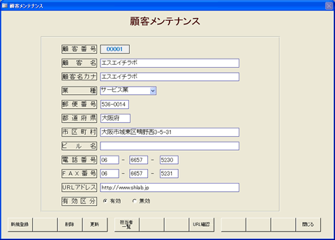 上記の顧客メンテナンスでは顧客を法人のみとして設計していますが、小売業などの場合は個人も顧客になりますので、法人・個人区分などを追加して管理することも有効です。 |
