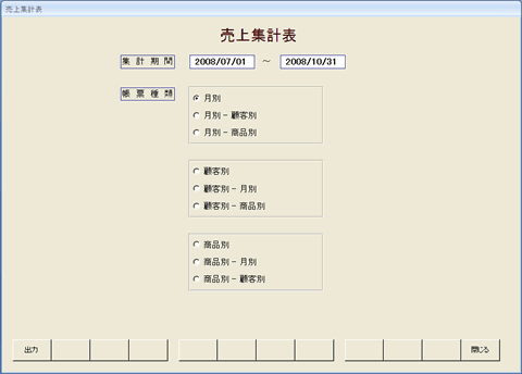 売上集計表は売上が確定した受注データを月別、商品別、顧客別で集計することで優良顧客や売れ筋商品を把握し、優良顧客の囲い込みや消費者ニーズの変化など事業を展開する(経営戦略)上で、参考となるデータの収集を行います。 |